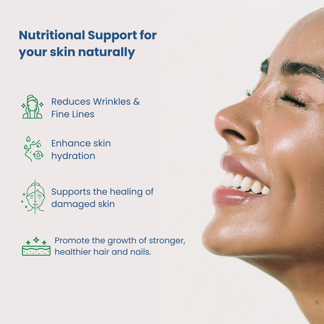 - Supports skin health, including hair and nails.